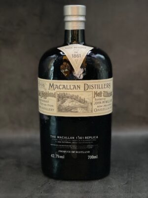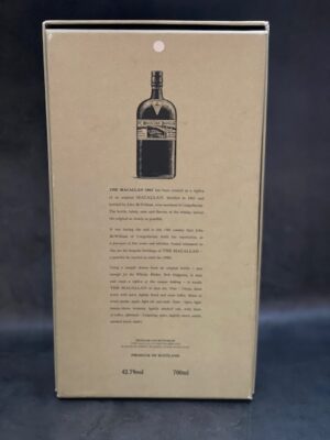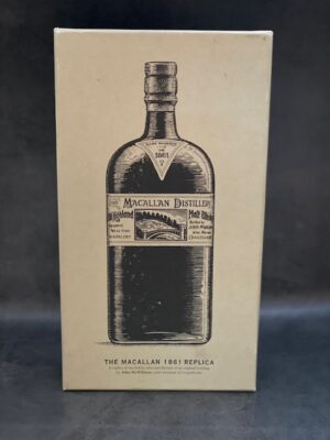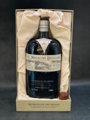 A very rare Macallan, the second in the series of Macallan’s Replica Series to recreate the style of whisky from the nineteenth century. Now discontinued. This replica of an original 1861 Macallan Whisky comes complete with separate cork. Due to age of box and handling there are some small marks, to be expected.