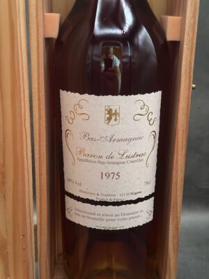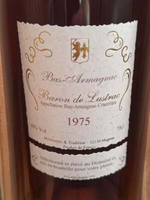 Baron de Lustrac is a small Armagnac brand known as an “éleveur-negociant” or “merchant-producer”. As an éleveur-negociant, Baron de Lustrac work with a small number producers and growers (20 ) throughout the Armagnac region. The producers will age the Armagnac in oak barrels in their own cellars but Baron de Lustrac are responsible for monitoring the ageing of the eau de vie, blending and bottling the final product. Thus Lustrac have a huge amount of control over the final product. All their Armagnacs, like this Baron de Lustrac 1975 Vintage Armagnac, are bottled at their bottling cellar in Nogaro.