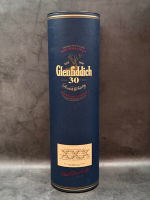 This is the highly sought-after “Blue Tube” edition of Glenfiddich 30 Year Old, a presentation style that was available in the 2000s and early 2010s before the brand switched to the modern “Suspended Time” packaging. The label proudly bears the slogan “Made Without Compromise,” a nod to the fact that the Malt Master personally nosed and tasted every single cask selected for this vatting.