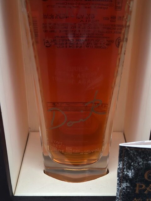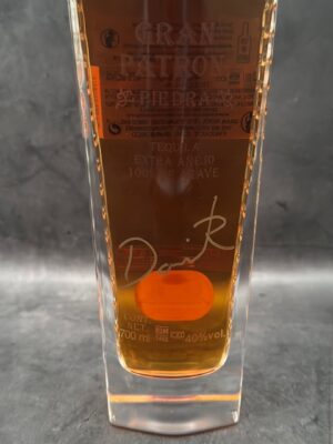 This is an exceptionally rare collector’s item: a 70cl bottle of Gran Patrón Piedra Extra Añejo Tequila, hand-signed by the Master Distiller.