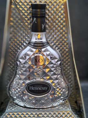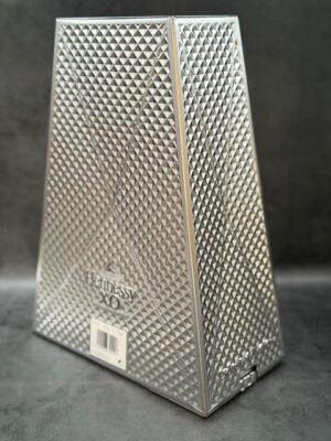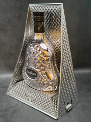 This bottle is not just a container; it’s a piece of art. The classic XO decanter is coated in a brilliant, textured silver that catches the light from every angle. It is presented in a magnificent, reflective, trapezoidal gift box that opens to reveal the bottle in a faceted cradle, amplifying its striking appearance.