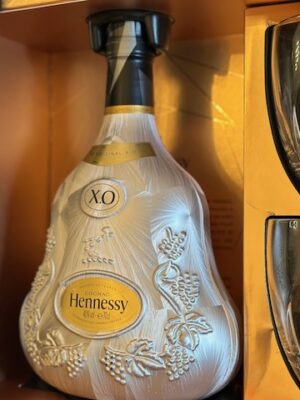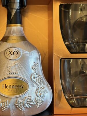 A special white bottle of Hennessy’s excellent XO Cognac with a set of two glasses from Baccarat designer Thomas Bastide. An elegant gift and one that will be treasured. This is very hard to find now and highly collectable. Please note our bottle is as per the pictures, there are a few small scratches to the top of the box from storage over the years. Bottle and glasses perfect.