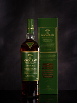 The Macallan Edition No. 4 is a limited edition single malt that pays direct homage to the opening of Macallan’s magnificent new distillery in 2018, celebrating the brand’s mastery of wood and spirit. Unlike Editions 2 and 3, this expression features no outside collaborator, with then-Master Distiller Nick Savage focusing on showcasing the structure and “weighty style” of the Macallan spirit. It was crafted using a complex combination of seven different cask types, including first-fill sherry-seasoned European and American oak from specific cooperages like Tevasa and Vasyma, alongside refill butts and hogsheads. Bottled at 48.4% ABV, this Speyside Scotch offers a bold and invigorating profile, delivering prominent notes of rich nutmeg, wood spices (ginger, clove), rounded honey, sweet toffee, and vibrant citrus fruits on a long, warm, and lasting finish. Its strong character and commemorative significance have made it a highly collectible bottle, maintaining significant value on the secondary market.