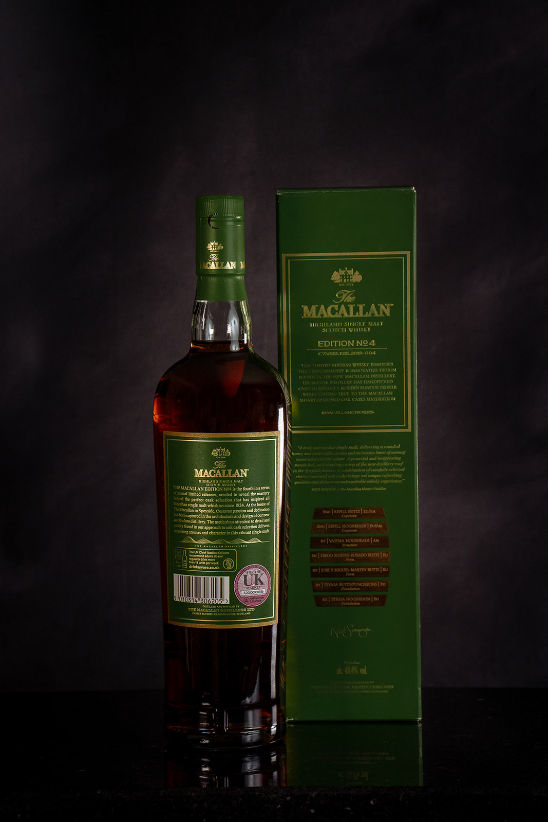 The Macallan Edition No. 4 is a limited edition single malt that pays direct homage to the opening of Macallan’s magnificent new distillery in 2018, celebrating the brand’s mastery of wood and spirit. Unlike Editions 2 and 3, this expression features no outside collaborator, with then-Master Distiller Nick Savage focusing on showcasing the structure and “weighty style” of the Macallan spirit. It was crafted using a complex combination of seven different cask types, including first-fill sherry-seasoned European and American oak from specific cooperages like Tevasa and Vasyma, alongside refill butts and hogsheads. Bottled at 48.4% ABV, this Speyside Scotch offers a bold and invigorating profile, delivering prominent notes of rich nutmeg, wood spices (ginger, clove), rounded honey, sweet toffee, and vibrant citrus fruits on a long, warm, and lasting finish. Its strong character and commemorative significance have made it a highly collectible bottle, maintaining significant value on the secondary market.