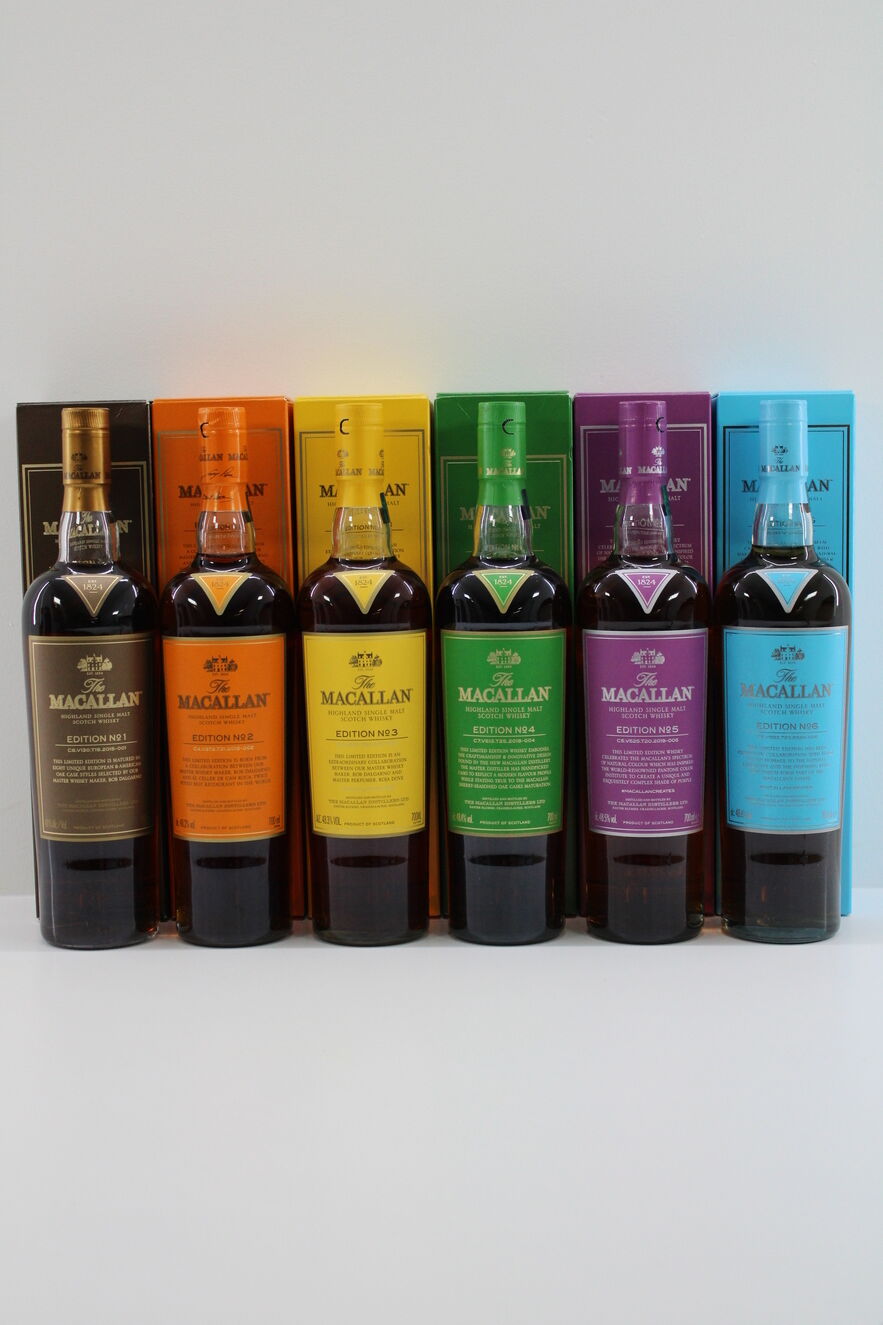 This is a rare and unmissable opportunity for the serious Macallan collector: the complete Macallan Edition Series Full Set, featuring all six bottlings (No. 1 – No. 6).