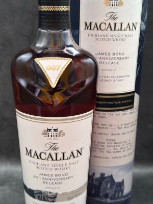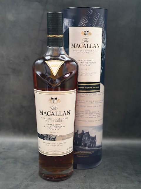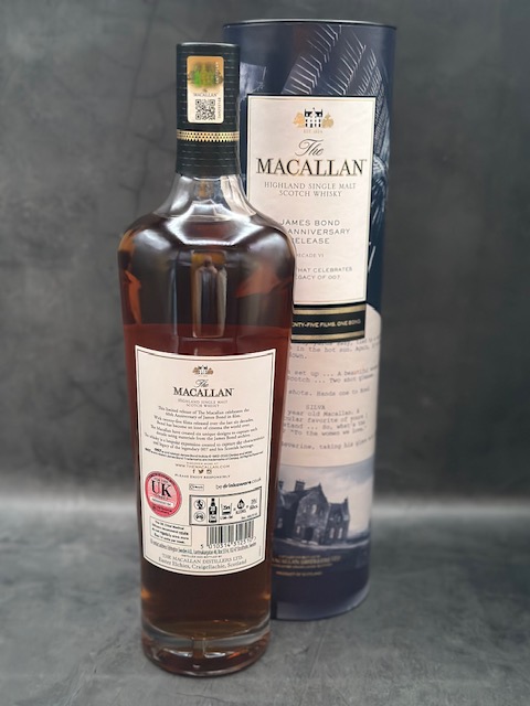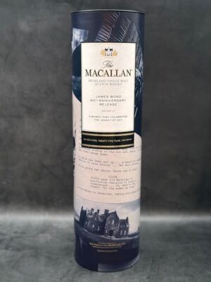 The packaging design features childhood home Skyfall Lodge in Skyfall (2012), and a Day of the Dead poster from Spectre (2015).