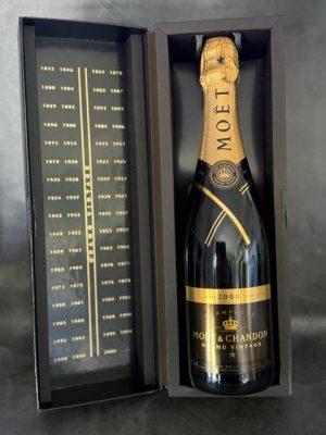 This bottle has been impeccably preserved. The gold foil is flawless, and the fill level remains high. It is housed in its original presentation case, which includes the Moët & Chandon vintage timeline—making it an ideal gift for the serious connoisseur.