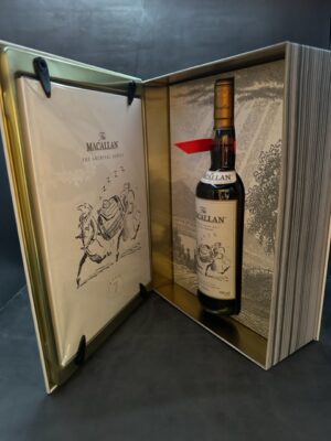 The highly sought-after Macallan Folio 7 is the seventh release in the collectible Archival Series, launched in 2023. This exclusive bottling celebrates the iconic 1984 advertisement known as “The Boffins Baffled,” which humorously depicts a group of scientists unable to explain the magic behind Macallan’s exceptional quality. Matured in Macallan’s signature Sherry Seasoned Casks, the 43% ABV single malt offers a captivating taste profile of raisins, milk chocolate, and orange peel, leading to a long, creamy finish with warm spices. Presented in the classic illustrated book-shaped tin, the Folio 7 is a must-have collector’s investment, initially secured via ballot and Global Travel Retail channels.